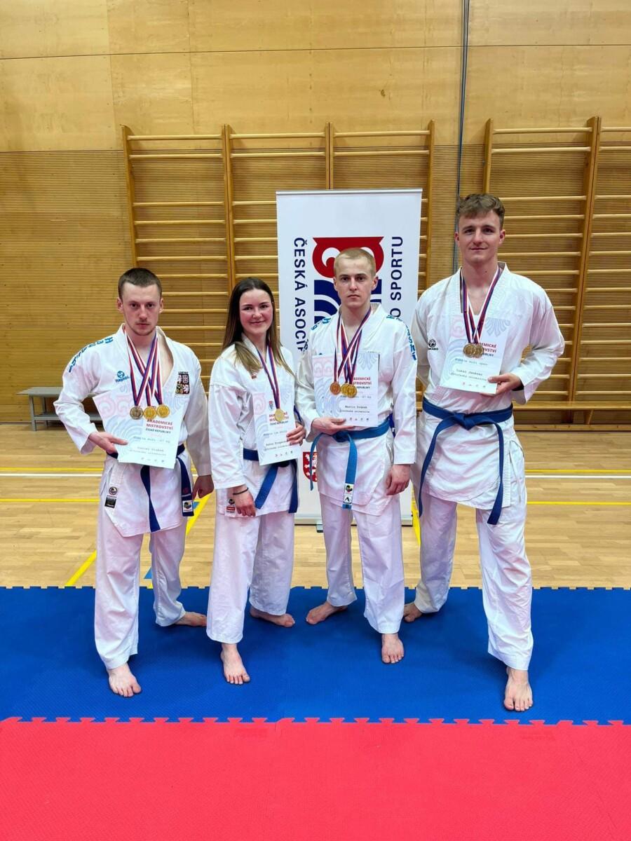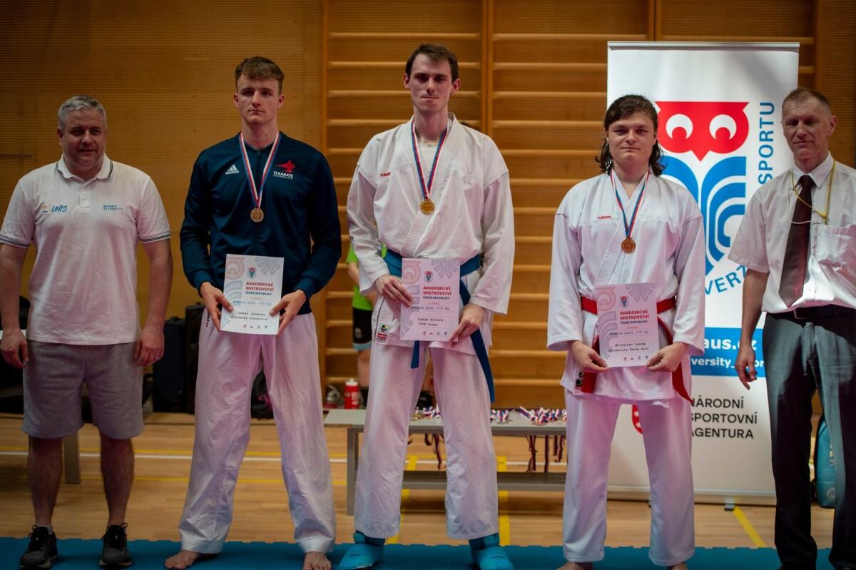 15. dubna 2024 | ČAUS | MŠ Letošní akademické mistrovství je za námi! Matteo Tamborlani z Masarykovy univerzity obhájil titul v kategorii kata muži. Svůj loňský výkon vylepšila Dominika Šabová z Mendelovy univerzity v Brně, která v letošním ročníku v kategorii kata ženy bere zlato. Dominika Suchá je dvojnásobnou akademickou mistryní. Zvítězila jak v kumite -61kg, tak v kategorii open. Akademickými mistry se stali: Matteo Tamborlani (MU) – kata, Lukáš Kotlík (ČVUT) – kumite +75kg, Martin Drábek (JU) – kumite -67kg, Alex Vodička (VUT) – kumite -75kg, Daniel Drábek (JU) – kumite open Akademickými mistryněmi se staly: Dominika Šabová (MENDELU) – kata, Monika Krupičková (UJEP) – kumite +68kg, Bianca Suchá (VUT) – kumite -61kg, kumite open ČAUS letos pořádal Akademické mistrovství ČR 13. dubna 2024 v Brně. Organizace se ujala Fakulta sportovních studií Masarykovy univerzity. Technicky soutěž zajistil Český svaz karate. Všem organizátorům děkujeme. Děkujeme také za hojnou účast studentů a všem medailistům gratulujeme. VÝSLEDKY Kata M Kumite M +75kg Kumite M -67kg Kumite M -75kg Kumite M OPEN Kata Ž Kumite Ž +68kg Kumite Ž -61kg Kumite Ž OPEN Kumite týmy 1. Jihočeská univerzita v Českých Budějovicích (Daniel Drábek, Martin Drábek, Petra Pragerová) 2. Vysoké učení technické v Brně (Alex Vodička, David Kocián, Bianca Suchá, Júlia Mišiková, Lukáš Mjartan) 3. Univerzita Palackého v Olomouci (Milan Tesař, Leona Marková) 3. České vysoké učení technické v Praze (Tereza Filipová, Lukáš Kotlík, Daniel Brejcha)