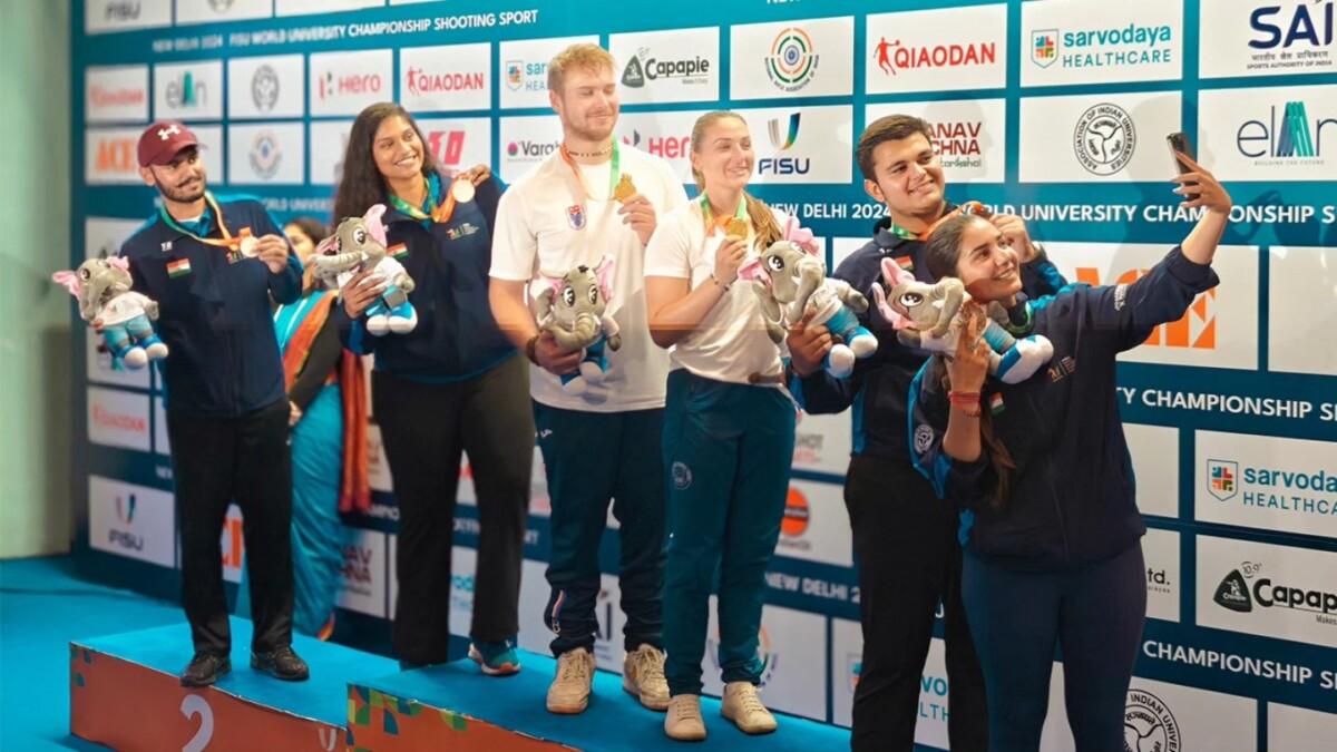 11. listopadu 2024 | Praha | ČAUS, ČAATS | DM Česká medailová sbírka v Indii už čítá 8 zlatých medailí! Také třetí soutěžní den na 9. Akademickém mistrovství světa v indickém hlavním městě Novém Dillí přinesl české výpravě zlaté medaile! Čeští reprezentanti tak doslova přepisují historické tabulky v počtu zisku zlatých medailí na jednom akademickém šampionátu. První zlatou medaili vybojovaly v pondělí české puškařky, když ovládly týmovou soutěž v disciplíně 50 m malorážka 3 pozice. Tým ve složení Veronika Blažíčková (ZČU), Sára Karasová (University of Alaska Fairbanks) a Kateřina Štefánková (VŠB-TUO) nastřílel v součtu 1756-93x bodů a o bod porazil domácí Indky (1755-89x bodu). Třetí místo v týmové soutěži žen vybojovaly Němky (175-87x bodu). Sára Karasová s Veronikou Blažíčkovou navíc prošly i do finálového klání mezi osmičku nejlepších v individuální soutěži. Veronika Blažíčková nakonec obsadila 5. místo, Sára Karasová skončila na 6. místě. O další zlatou medaili se postaral Jiří Přívratský (PEUNI) v disciplíně 10 m vzduchová puška. Stejně jako v neděli v třípolohové malorážce ovládl český olympionik úvodní kvalifikaci s rekordním nástřelem 633,7 bodu. Ve finále vedl Jiří Přívratský od první série a vedení nepustil až do konce soutěže, i když se na něj dotahoval domácí indický závodník Smit Rameshhbai Moradiya, který za českým střelcem nakonec zaostal o pouhou desetinu bodu. Jiří Přívratský bral zlato za nástřel 252,2 bodu, indický závodník zapsal nástřel 252,1 bodů a bronzový Maciej Kowalewicz z Polska 230,1 bodu. Třetí zlato pak do české sbírky přidali Zina Hrdličková (MU) a Jan Palacký (MENDELU) soutěži mix týmů v trapu. S nástřelem 140 bodů za sebou o dva body nechali tým Indie 2 (138 bodů) a o tři body na ně nestačil tým Indie 1 (137 bodů). Druhý český pár Martina Matějková (VUT) a Ondřej Šťastný obsadil s nástřelem 134 bodů 4. místo. Čeští sportovní střelci zatím v Indii vybojovali 8 zlatých medailí a jednu stříbrnou. Foto: FB 2024 FISU World University Championship Shooting Sport