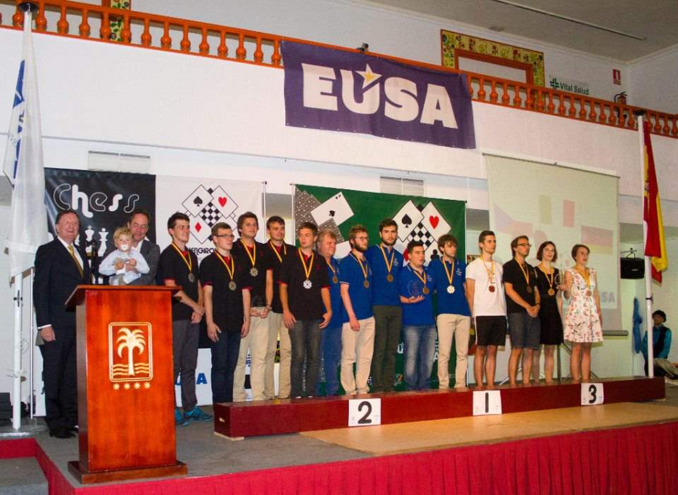 Po klasickém vyzvednutí akreditací a nezbytném focení jsme se vydali ubytovat a odpočinout si před zahajovacím ceremoniálem. Celý turnaj byl společný pro šachy a bridž, v tom má EUSA očividně v plánu pokračovat. Po ceremoniálu už jsme neměli sílu na cokoliv, takže jsme spěchali do postele dohnat spánkový deficit.