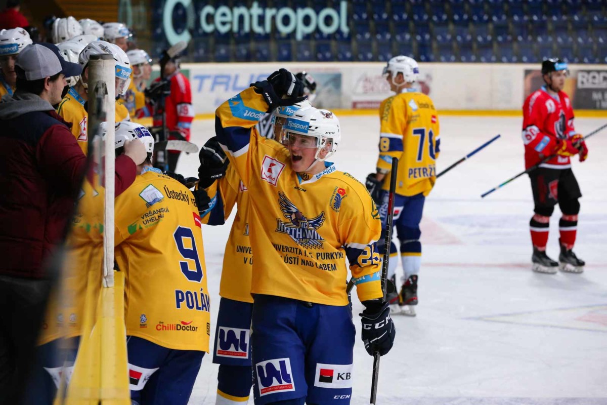 21. února 2022 | univerzitnihokej.cz Uplynulý týden nabídl hned pět utkání Univerzitní ligy ledního hokeje, díky nim máme jasno o dalších postupujících do play off. Nejprve se ale Black Dogs přiblížili UK Hockey v čele tabulky a ukončili dlouhou šňůru výher pražského celku. North Wings si díky kanonádě zajistili postup do vyřazovacích bojů. Stejná rovnice platila pro Akademiky a Ostravany, kteří dokázali zvítězit a míří do play off. Mezi osmičkou nejlepších týmů ULLH nebude chybět ani brněnská MUNI. Zbývá tedy jediné postupové místo, ke kterému mají nejblíže hokejisté z Olomouce. Black Dogs přerušili vítěznou sérii UK Hockey Prague Hráči z Karlovy Univerzity si udělali výlet do Českých Budějovic. Svědky první branky jsme byli v patnácté minutě, kdy se prosadil z druhé vlny domácí Kaisler. Záhy padla také druhá branka do pražské klece. Grauer poslal kotouč do víka. Hosté se na střeleckou listinu zapsali v úvodu druhé třetiny, Rudolph byl na konci kombinace v přečíslení. Další přečíslení pražských hokejistů přineslo další branku, Piskač se prosadil mezi betony. Otočku dokončil Hakl, který překonal Svobodu bekhendovou střelou. Budějovičtí srovnali krok, Rolínek se prosadil nad beton Maška. Ke konci druhé dvacetiminutovky šli do vedení opět hosté z Prahy, Volf přetavil příznivý odraz od zadního mantinelu v gólovou trefu. Nepříznivý stav domácí srovnali tři minuty před koncem, kdy úspěšně dorážel Prášek. Šedesát minut vítěze utkáni neurčilo, a tak se šlo do prosloužení. V tomto úseku zápasu skóroval Pinkas z Black Dogs, který číhal před brankou na dorážku. Black Dogs Budweis – UK Hockey Prague 5:4p (2:0, 1:4, 1:0 – 0:0) Branky a nahrávky: 15. Kaisler (Šafář, Dvořák), 16. Grauer (Svoboda), 36. Rolínek (Prášek, Bouška), 57. Prášek (Vochozka, Šuhaj), 64. Pinkas (Kubeš, Prášek) – 21. Rudolph (Čmejla, Volf), 27. Piskač (Volf), 29. Hakl (Velas, Rudolph), 39. Volf (Kopenec, Čmejla). Křídla Severu deklasovala brněnské Kavalíry Kanonáda ústeckých North Wings začala v sedmé minutě, když se trefil pod horní tyčku Šebesta. O pár minut později domácí zvyšovali, Amirov doklepl střelu Brandnera do odkryté branky. Třetí radost domácích obstaral Balcar, který našel skulinku v postoji gólmana Buriana. Úspěšnou gólovou smršť v první třetině završil Amirov, který uspěl ranou mezi betony. Hosté se ve druhé třetině zlepšili, ale své šance v branku nepřetavili. A tak pokračovali v krasojízdě Severočeši, Petržílka využil přesilovou hru a odbila pátá. Další branku Křídel Severu přidal kapitán Polák, který ránou švihem rozvlnil síť za Burianem. I třetí perioda byla v režii domácích North Wings, kteří přidali ještě dvě slepené trefy do branky Brňanů. Nejprve skóroval Tomáš Jarý, který mířil mezi betony a poslední branku utkání měl na svědomí Harkabus. HC NORTH WINGS Ústí nad Labem – VUT Cavaliers Brno 8:0 (4:0, 2:0, 2:0) Branky a nahrávky: 7. Šebesta (Harkabus, Jaroš), 12. Amirov (Brandner, Straka), 16. Balcar (Dytrych, Sajdl), 19. Amirov, 36. Petržílka (Balcar, Sajdl), 39. Polák (Sajdl), 45. Jarý T. (Štěpánek), 47. Harkabus (Šebesta, Jarý P.). Ostrava rozhodla několik vteřin před sirénou Velmi vyrovnané utkání se uskutečnilo v Uničově, proti olomouckým hokejistům se postavil tým BO Ostrava. Střelecký účet zápasu otevřel domácí Filip Palička, který zasunul odražený puk do klece. Do první sirény stihl srovnat ostravský útočník Kovlaski, který prostřelil Novotného. Na začátku druhé periody měla Olomouc více ze hry, to se projevilo ve 34. minutě, kdy skóroval Rosecký. Zanedlouho bylo však opět srovnáno, Moravčík se po pěkné individuální akci radoval ze vstřelené branky. Třetí třetina přinesla atraktivní podívanou, Hanáci šli opět do vedení, Krejčiřík použil k překonání Šindelky forhendovou střelu. Ostravané však za moment opět srovnali krok, kotouč zametl do klece střelec Sysala. Do vedení šli také hosté, Sysala proměnil trestné střílení. Střela Dominika Kuchaře znamenala další vyrovnání stavu, stalo se tak tři minuty před koncem. Vše nasvědčovalo tomu, že se bude prodlužovat, ale necelé čtyři vteřiny před koncem základní hrací doby udeřili hráči BO Ostrava. Benát předvedl skvělý přehled a z dorážky rozhodl o zisku tří bodů do tabulky ve prospěch Ostravy. HC Univerzita Palackého v Olomouci – BO Ostrava Vítkovice Steel 4:5 (1:1, 1:1, 2:3) Branky a nahrávky: 6. Palička (Krejčiřík, Kropáč), 34. Rosecký (Krejčiřík, Palička), 45. Krejčiřík (Rosecký), 57. Kuchař (Palička, Krejčiřík) – 15. Kovalski (Gřesík, Sysala), 37. Moravčík (Adamczyk), 48. Sysala (Gřesík, Baca), 53. Sysala (TS), 60. Bernát (Adamczyk, Dvořák). Akademici osedlali pardubické Riders a zajistili si play off Vskutku důležité utkání se odehrálo v plzeňské Ice Aréně, do západočeské metropole dorazili pardubičtí Riders. Domácí poslal do vedení Šibra, který byl na konci přesilovkové kombinace. Za Východočechy záhy skóroval Bezděk. Chvíli před první sirénou se upalovali Akademici v oslabení na pardubickou branku, Kalus se nemýlil. Druhou třetinu otevřel Kalus, který se prokličkoval před gólmana a bekhendovou trefou navýšil vedení svého celku. Krátce po polovině utkání se připomněli hosté, Bureš se prosadil střelou přes obránce. Třetí perioda byla jasně v režii Západočechů, kteří do ní vlétli jako uragán. Plzeňští nejprve dostali přesilovou hru, ve které skóroval Říha. Deset minut před koncem dokončil hattrick Jan Kalus, který si v utkání zároveň připsal hattrick Gordieho Howea za gól, bitku a asistenci. Pardubičtí se pokusili o zázr
