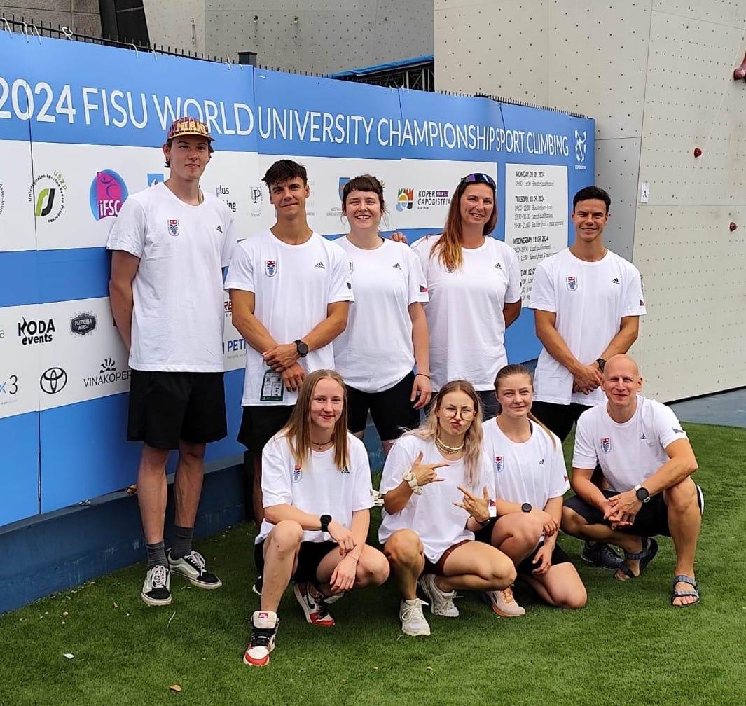 Na Akademickém mistrovství světa ve sportovním lezení ve slovinském Koperu se Čechům se na boulderu nedařilo, skončili před branami semifinále. V lezení na obtížnost měli čeští studenti od začátku dobře našlápnuto, postup do semifinále si zajistilo pět z nich. Počasí však změnilo podmínky a konalo se rovnou finále, kam postoupilo pouze nejlepších osm. Češi tak svá umístění vylepšit nemohli. V Koperu proběhlo ve dnech 9. – 12. 9. 2024 Akademické mistrovství světa ve sportovním lezení. Představilo se v něm celkem 6 českých reprezentantů, kteří soutěžili ve dvou disciplínách – bouldering a lezení na obtížnost. Pondělí se neslo v duchu boulderové kvalifikace, do které nastoupili Markéta Janošová, Tereza Širůčková, Ema Galeová, Jáchym Cink a bratři Štěpán a Šimon Potůčkovi. Po silném dešti, kdy se podmínka měnila po každém závodníkovi se ze sebe všichni aktéři snažili dostat co nejvíce. To ovšem nestačilo, a tak nakonec zůstali všichni před branami semifinále (Janošová 26., Galeová 37., Širůčková 38., Potůček Štěpán 25., Potůček Šimon 33., Cink 46., Galeová 37.). Po dni volna potom následovaly ve středu kvalifikace v lezení na obtížnost, odkud se do semifinále probojovalo hned pět našich reprezentantů! Cesty byly vytrvalostní, což českým lezcům velmi sedělo a postarali se tak o tyto skvělá umístění. Všechny naše závodnice předvedly podobné výkony. Nejlépe si vedla Ema Galeová, která se v obou cestách přiblížila topu a zasloužila si tak 9. postupovou příčku. Velmi dobře lezly také Tereza Širůčková s Markétou Janošovou, které skončily na 12. a 16. místě. Mezi muži nejlépe zalezl Jáchym Cink, který měl letos na mezinárodních závodech premiéru. Ta dopadla dobře a Jáchym postopil z 20. místa. Velmi těsný postup si po napínavém čekání vysloužil také Štěpán Potůček. Ten nakonec obsadil 26. příčku. Postup se bohužel nepovedl Šimonovi Potůčkovi, který ve druhé cestě udělal nepříjemnou chybu a přesto, že po první cestě na tom byl dobře skončil na 34. místě. Semifinále bylo z důvodu vydatného deště zrušeno a konalo se rovnou finále. Do něj postoupilo 8 nejlepších závodníků z kvalifikace a Čechům tedy zůstaly výsledky ze středeční kvalifikace. Výpravu trenérsky zajišťovali Silvie Rajfová a David Migal. O regeneraci závodníků se stará Markéta Foltýnová z Fyzio gym Cooper. Za kompletní podporu akademické reprezentace děkujeme České asociaci univerzitního sportu. Celá fotogalerie českého univerzitního týmu