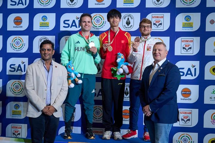 17. října 2024 | ČAATS | DM Jiří Přívratský na Světovém poháru potvrdil svou formu dvěma cennými kovy. Český střelec svým výkonem potvrdil, že patří k adeptům na cenný kov i na blížícím se Akademickém mistrovství světa. Již za necelý měsíc, konkrétně 9. listopadu, odstartuje v Novém Dillí v Indii 9. Akademické mistrovství světa ve sportovní střelbě. Ještě před samotným akademickým šampionátem se na stejné střelnici uskutečnilo Finále Světového poháru ISSF (Mezinárodní federace sportovní střelby). Do něj se na základě postavení ve světovém žebříčku probojovali i dva čeští sportovní střelci, kteří figurují i v nominaci na AMS. Jiří Přívratský (PEUNI), který se představil v disciplínách 10 vzduchová puška a 50 m malorážka 3 pozice, a Matěj Rampula (ZČU) v disciplíně 25 m rychlopalná pistole. Jiří Přívratský, kterému ve světovém žebříčku třípolohové malorážky patří vynikající druhé místo, své žebříčkové postavení potvrdil ziskem stříbrné medaile, když nestačil s nástřelem 464,2 bodu pouze na soupeře z Maďarska Istvana Peniho (465,3 bodu). Na stupních vítězů je doplnil na třetím místě indický závodník Akhi Sheoran (452,6 bodu). V 10m pušce pak ve finále SP, do kterého postoupil z 12. místa světového žebříčku, vybojoval ostravský rodák bronzovou medaili s nástřelem 229,8 b. Z vítězství se radoval Číňan Lihao Sheng (251,4 bodu) a stříbro bral vítěz třípolohové malorážky Istvan Peni (251,3 bodu). Matěj Rampula začal soutěž v rychlopalné pistoli na 25 m (8. místo ve světovém žebříčku) vynikajícím celkovým nástřelem 294 bodů, který mu po první části kvalifikace vynesl dokonce první místo. V druhé části kvalifikace o 6 míst ve finálovém rozstřelu se student ZČU během dvou úvodních sérií držel na předních pozicích, ale závěrečná třetí série, v níž nastřílel 89 bodů, jej nakonec srazila na konečné 10. místo ve finále SP (578 bodu). Z vítězství se radoval čínský závodník Yoehong Li. Oba čeští sportovní střelci, kteří se v létě zúčastnili i OH v Paříži, v Indii potvrdili svou střeleckou formu. Jiří Přívratský, česká střelecká jednička, v Indii po skončení SP zůstane a na AMS se bude připravovat spolu s indickým střeleckým týmem, který se momentálně řadí k absolutní světové špičce. V první 10 žebříčku ISSF aktuálně figuruje hned 6 indických závodníků. Foto: web ISSF