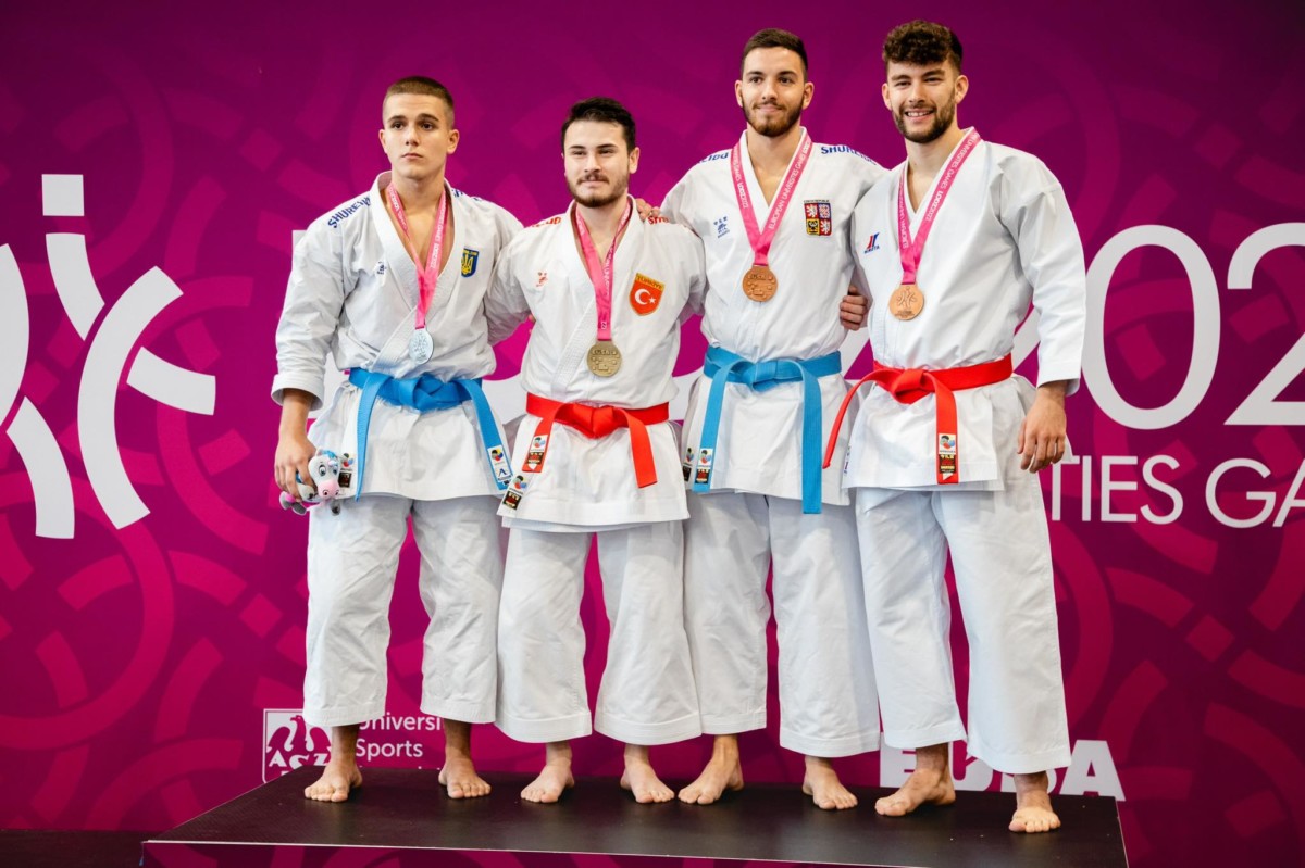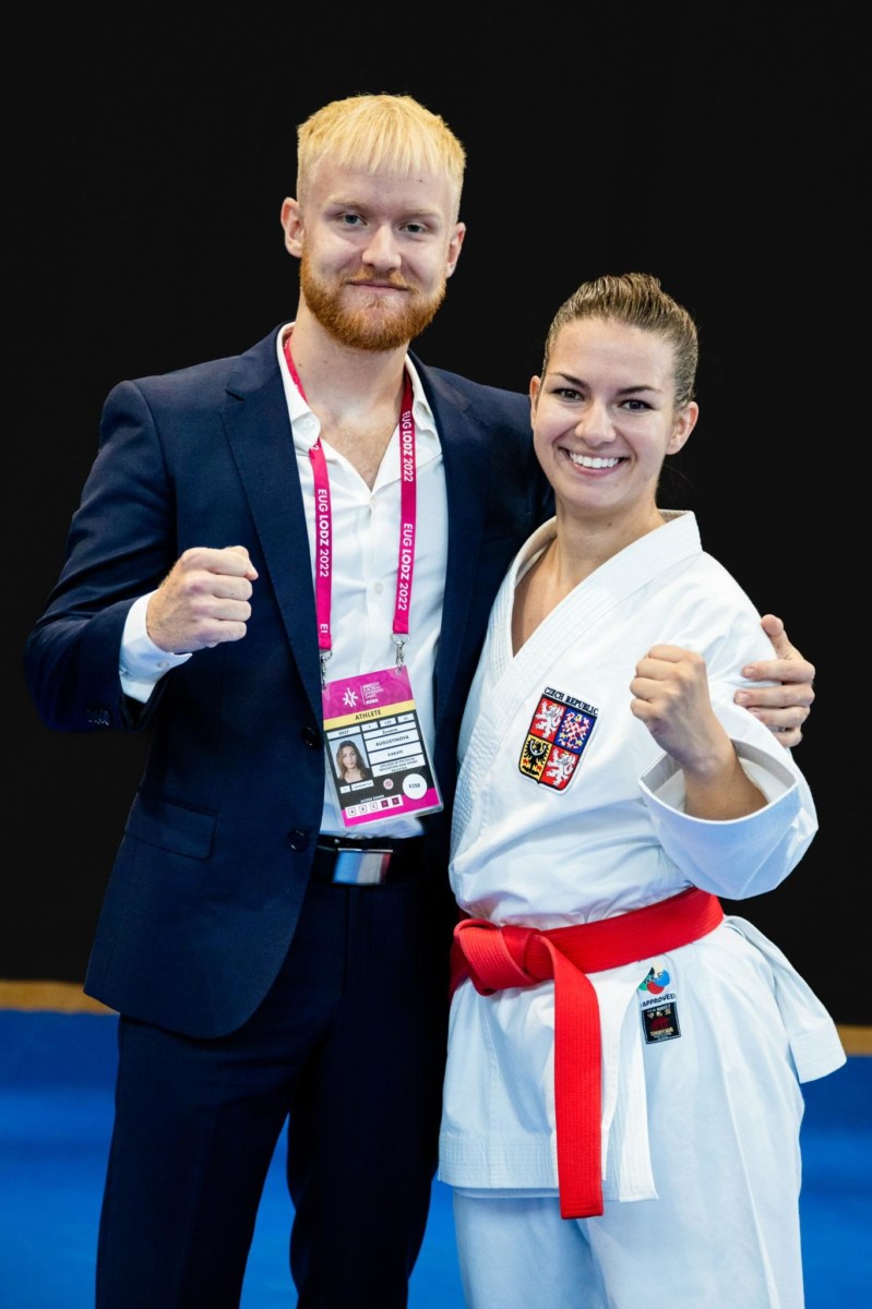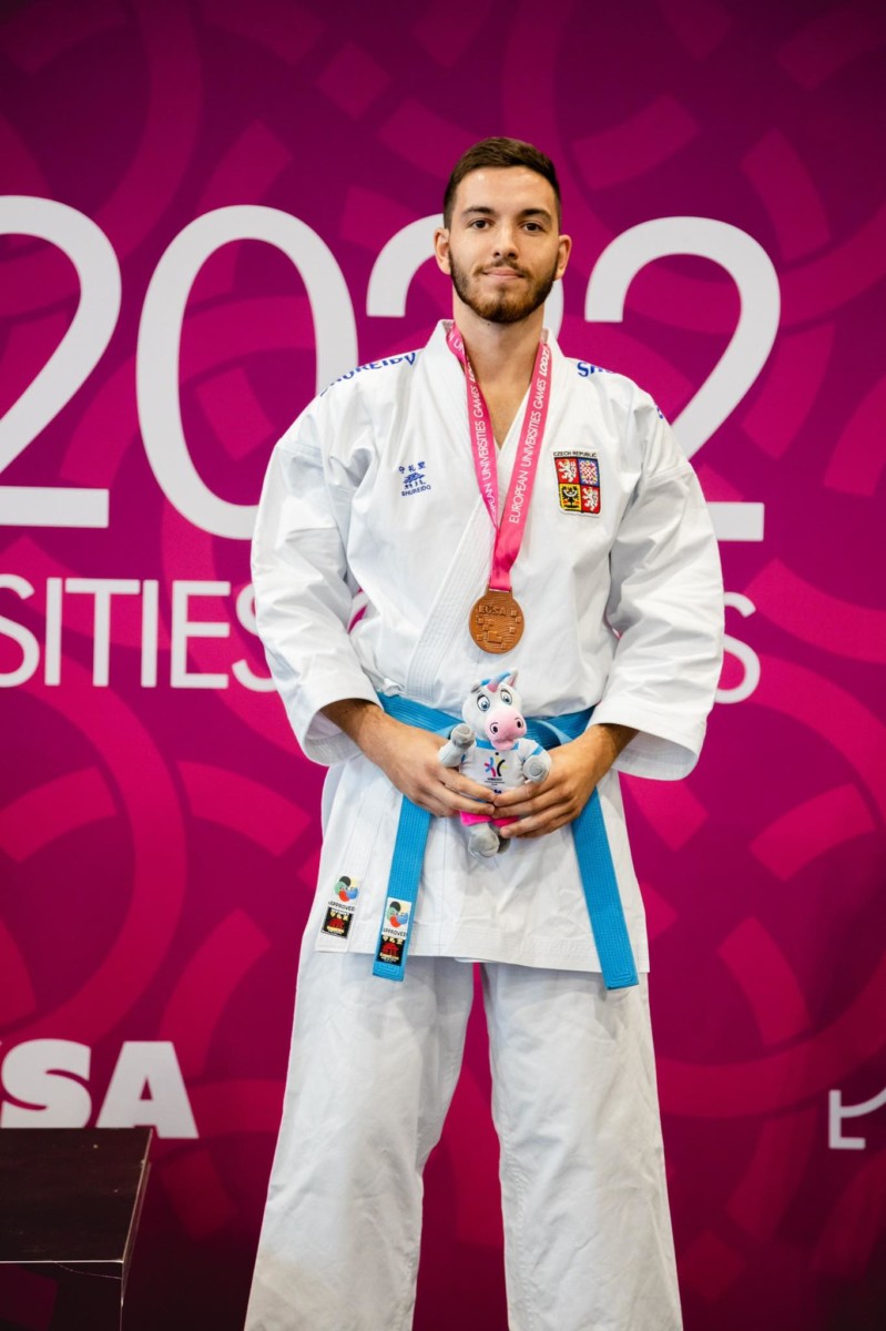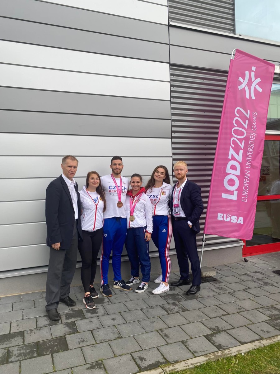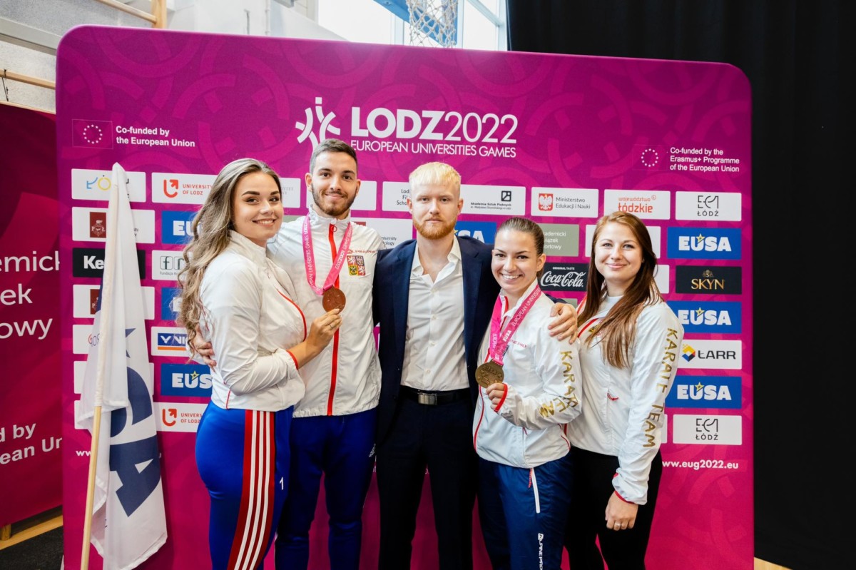 31. července 2022 | ČAUS | M. Štenclová, M. Kubín Zlato z Evropských univerzitních her 2022 v Lodži putuje zásluhou karatistky Zuzany Augustinové na Palestru, bronz díky Matteovi Tamborlanimu na Masarykovu univerzitu. Turnaj v karate proběhl ve dnech 28. – 30. července 2022 v polské Lodži v rámci Evropských univerzitních her. Česká asociace univerzitního sportu vyslala do této soutěže celkem pět sportovců, kteří reprezentovali pět univerzit z celé republiky. Mezi třemi stovkami závodníků z celé Evropy se čeští karatisté rozhodně neztratili! Pětičlenný tým nakonec odjel s velmi hezkou bilancí 1 zlaté medaile, 1 bronzové medaile a jednoho 5. místa. Kata z říše snů První den eliminací kata byl z říše snů. Všichni reprezentanti postupovali eliminací jako nůž máslem. Na konci dne se do bojů o bronz zapojili Matteo Tamborlani z Masarykovy univerzity a Dominika Šabová z Mendelovy univerzity. Matteo byl úspěšný a vybojoval si bronz. Dominika svůj poslední souboj o bronz jen těsně prohrála. Ten den nejlepší, Zuzana Augustinová reprezentující Vysokou školu tělesné výchovy a sportu Palestra, se probojovala do sobotního finále. Na úspěchy z prvního dne nenavázali Druhý den v eliminacích kumite se zapojili do bojů jak Matteo Tamborlani, tak David Maroši z Vysokého učení technického v Brně. Matteo povzbuzený úspěchem z předešlého dne však nestačil v prvním kole na soupeře z Ukrajiny. Stejně tak David Maroši zase nepřekonal tureckého závodníka. A tak nakonec nejlepší umístění získala Adriana Crhonková z Jihočeské univerzity, která skončila na 9. místě. Zlatá Augustinová V sobotu všichni v nadějích očekávali, zda Zuzana Augustinová svůj úspěšný výkon korunuje titulem Mistryně Evropy a to se také podařilo! Ve finále získala více bodů než její chorvatská soupeřka, a tak ozdobila svůj výkon zlatem. Slova trenéra na závěr “Všem je třeba poděkovat za vynikající výkony a v neposlední řadě vyzdvihnout práci nového univerzitního kouče Matěje Říhy, který při své premiéře, dokázal všechny dostatečně namotivovat k těm nejlepším výkonům. Karatisté podpořili svým výkonem úspěšné sportovce z České republiky na těchto Hrách a dokázali, že český univerzitní sport je na vysoké úrovni.” “Závěrem chci poděkovat i České asociaci univerzitního sportu za podporu při účasti na těchto hrách a panu Kubínovi za organizační přípravu a působení v roli rozhodčího.” Výsledky Fotogalerie