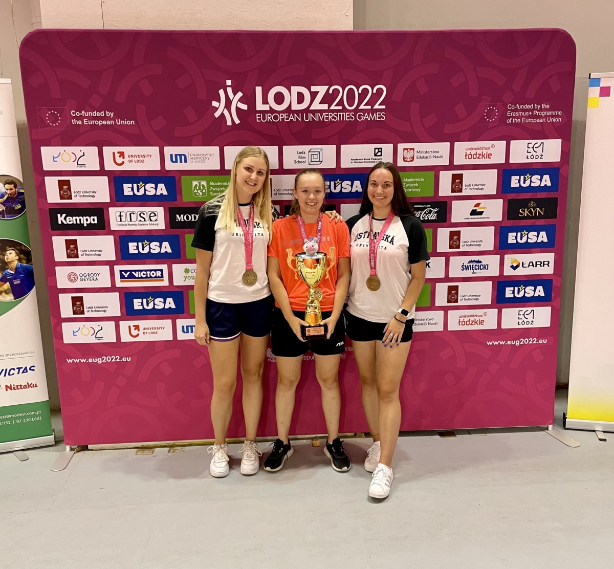 Zdena Blašková, Markéta Ševčíková a Gabriela Štěpánová, studentky Ostravské univerzity předvedly na Evropských univerzitních hrách skvělé výkony a vezou domů hned dvě medaile. Zlato vybojovaly hned druhý den ve dvouhře týmů, když ve finále oplatily porážku soupeřkám ze skupiny a hladce Francouzky porazily 3:0. K tomu pak ještě přidaly stříbro ve čtyřhře, když po napínavém souboji podlehly ve finále soupeřkám z Turecka 2:3.
